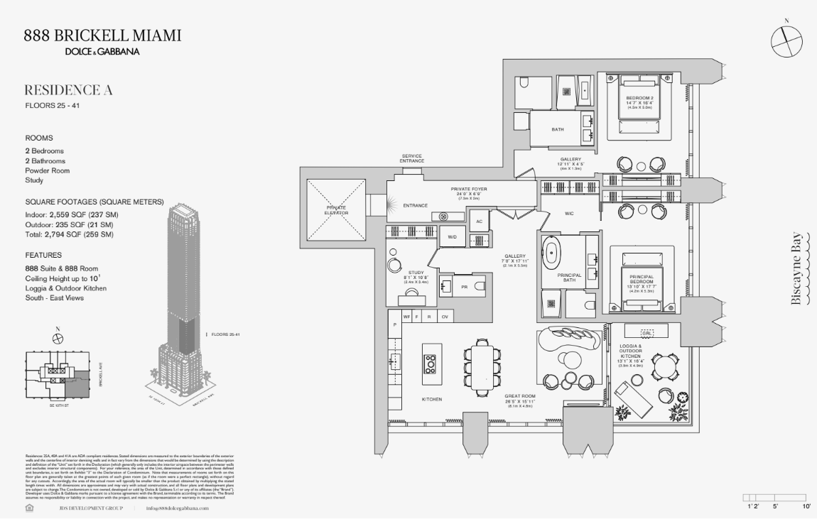 Residencias totalmente amobladas de 1 a 4 dormitorios, desde 107 m² (1,159 ft²) hasta 487 m² (5,241 ft²), con precios desde USD 2.1M hasta USD 14M. Entrega estimada en 2028.