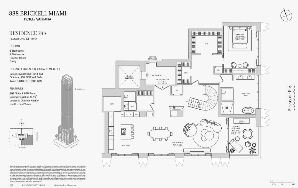 En el corazón de Brickell, la zona más vibrante de Miami, se eleva 888 Brickell, una torre residencial y hotelera de 90 pisos que redefine el lujo contemporáneo. Diseñado por Studio Sofield y desarrollado por JDS Development Group, este ícono arquitectónico combina el glamour italiano de Dolce & Gabbana con vistas panorámicas del Atlántico, la Bahía de Biscayne y Downtown Miami.